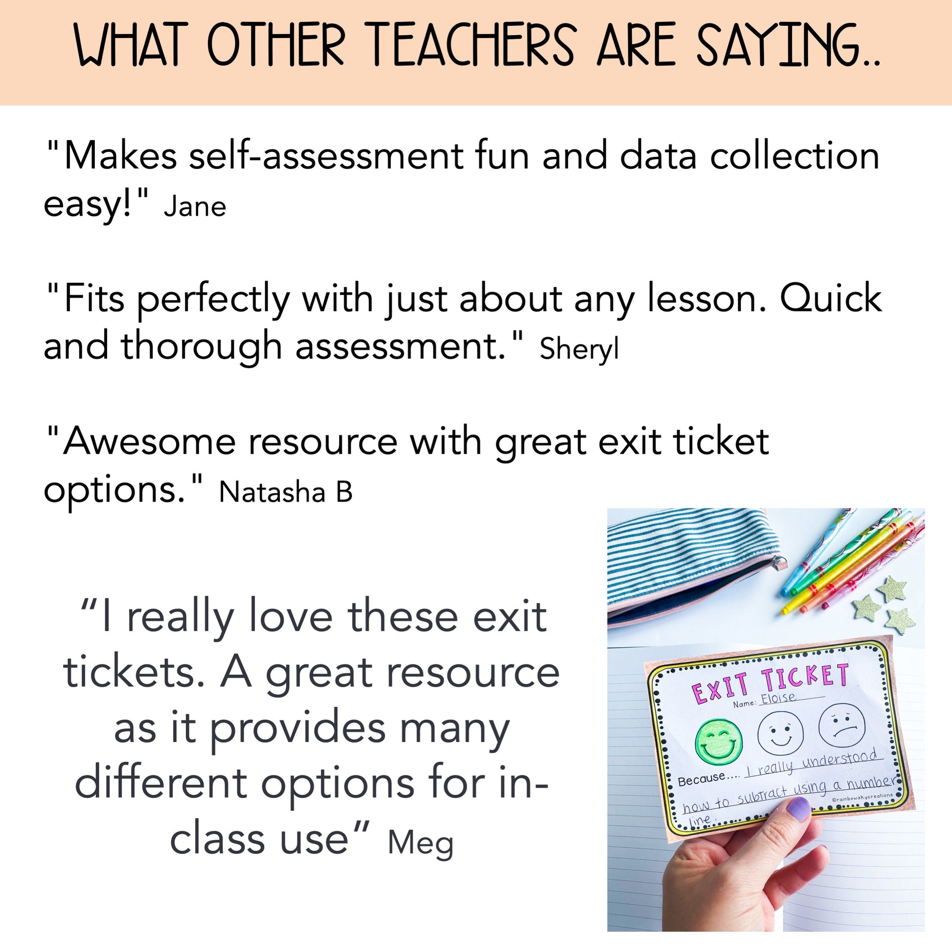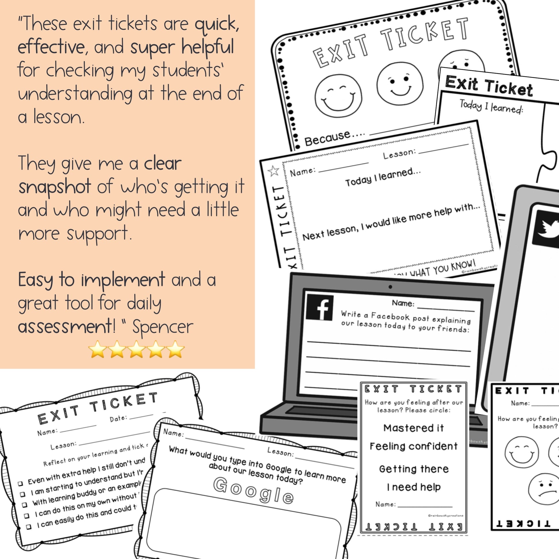 "I've been searching for cool and engaging, yet simple exit tickets and I finally found them!!! Thank you!" Alayna