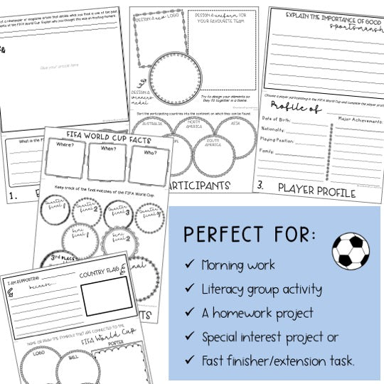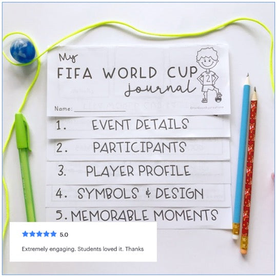 The aim of this resource is for students to reflect upon the events of the FIFA World Cup. It focuses on students researching and reflecting on the event while it is happening. A perfect activity for morning work, a homework project or fast finisher/extension task.