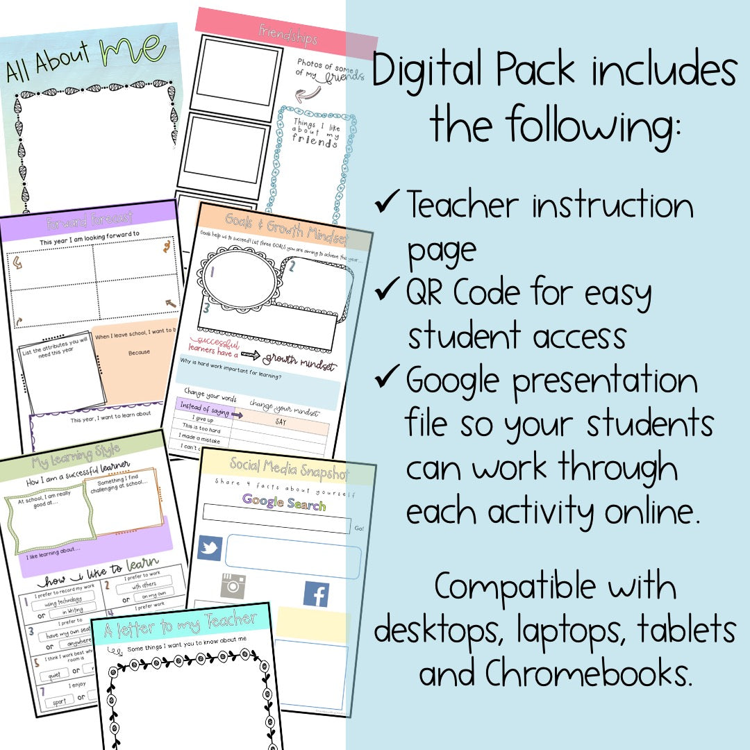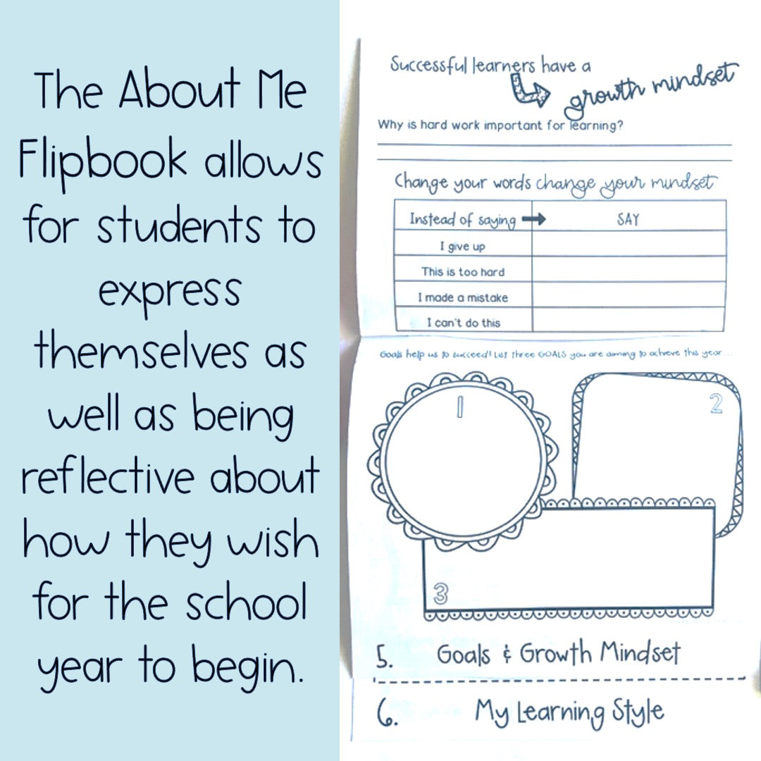 Want a fun and exciting way to get to know your students? This About Me Flipbook BUNDLE includes six sections for students to express themselves as well as being reflective about how they wish for their school year to start off.