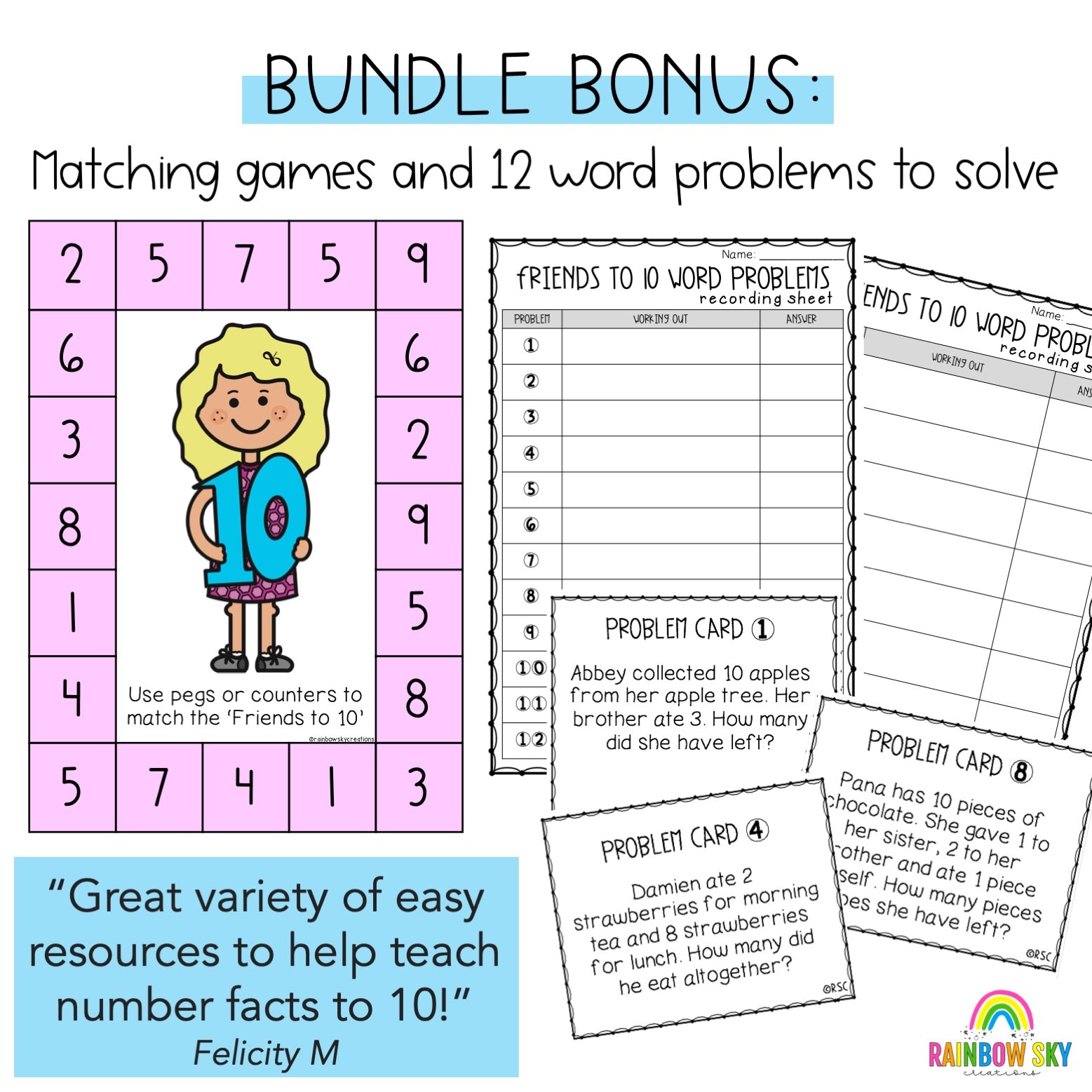 "Love this product!!! It is a great resource and work that I can hand out to do independently. Great way to learn different ways to make 10." Nancy