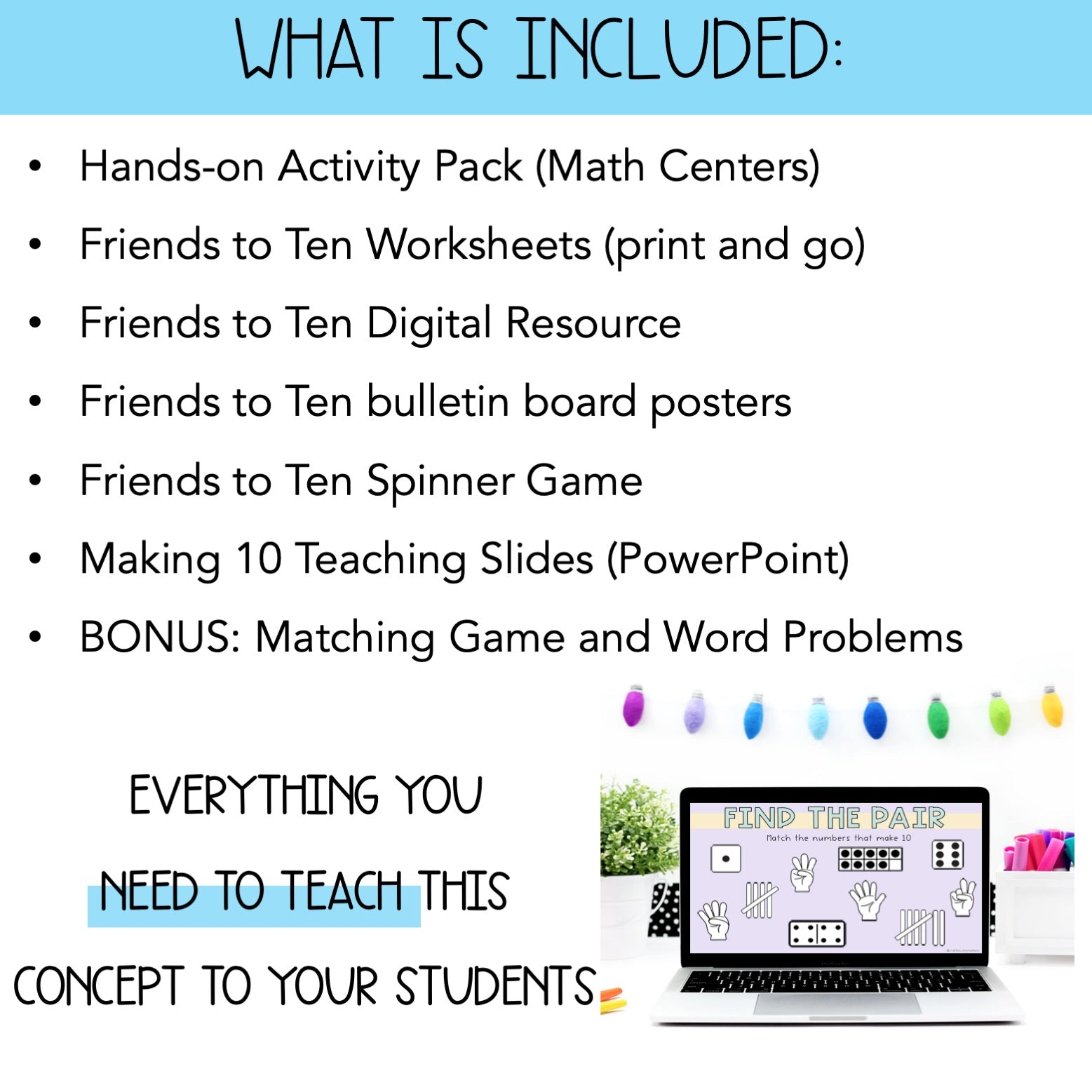 This bundle provides lots of opportunities for your students to learn and become fluent in the number combinations that make 10.