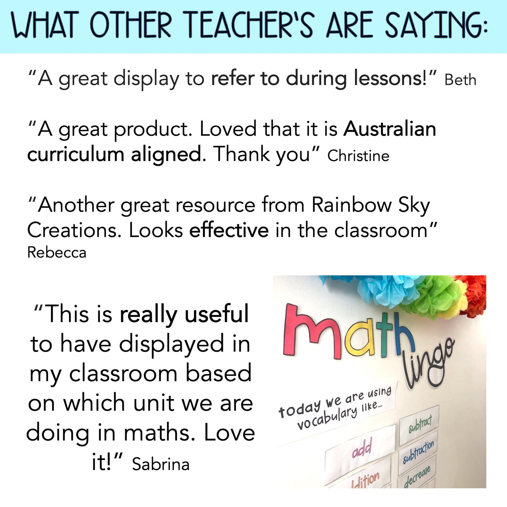 "Useful product to support the learning of the language of Mathematics" Kathy