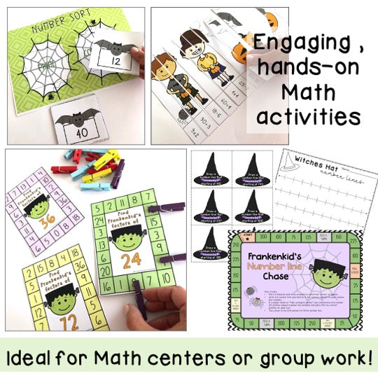 Halloween Math Centre Activities BUNDLE | No Prep | October Math [Grade 3 & 4]