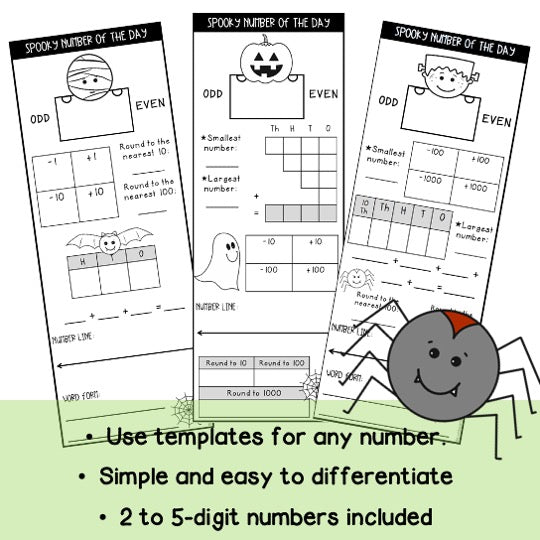 - Halloween Number of the Day Templates (2 to 5-digit numbers)