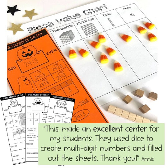 “This made an excellent center for my students. They used dice to create multi-digit numbers and filled out the sheets. Thank you!” Annie