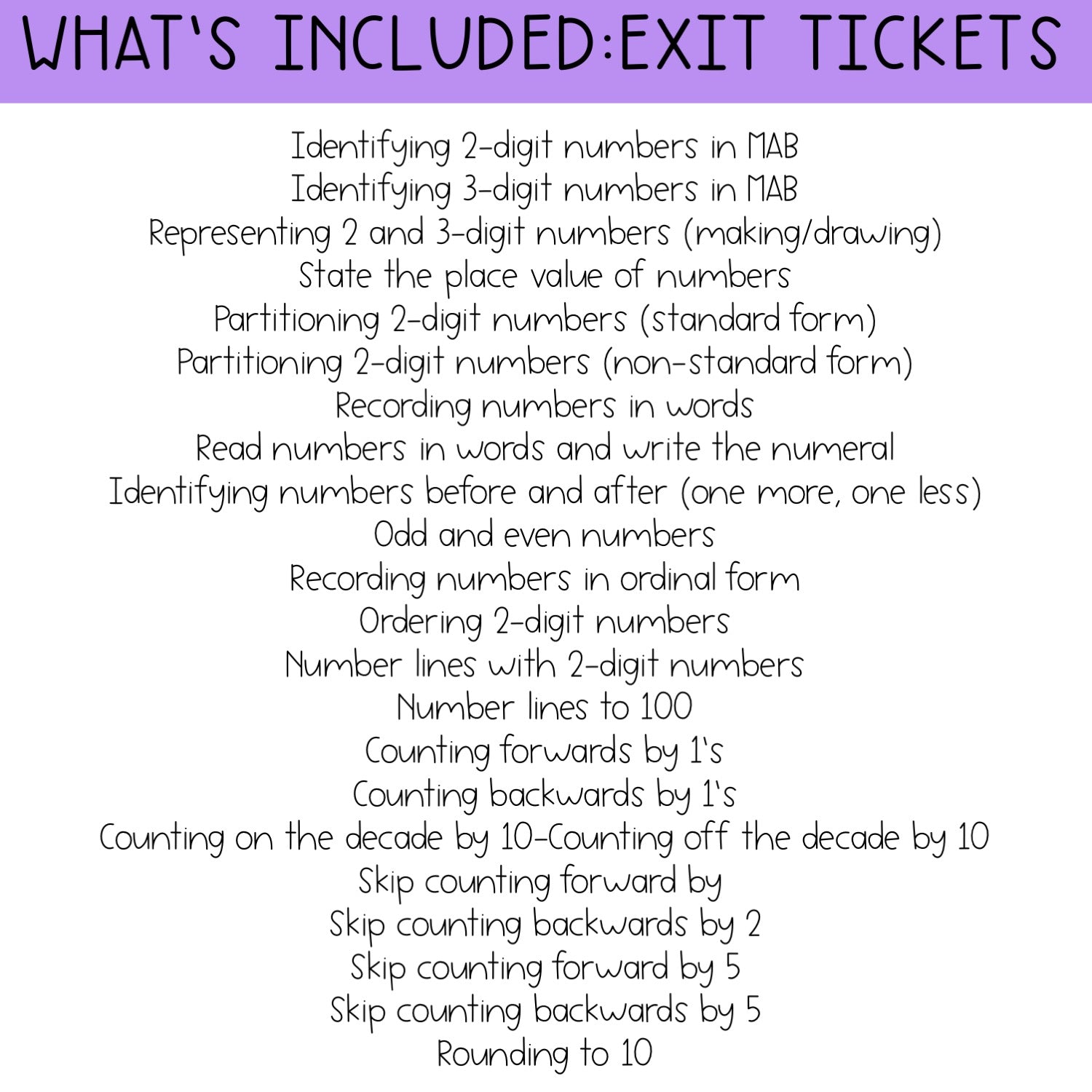 The All about Number Exit Tickets pack includes 35 different exit tickets to assess your students understanding of number and place value expected in Grade 1.