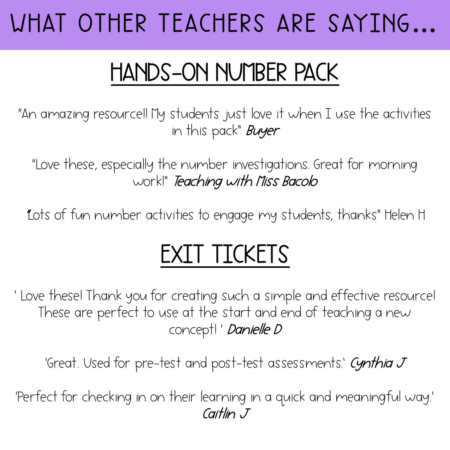 Our All About Number BUNDLE includes 16 hands-on number activities plus 35 pages of complimentary exit tickets to match each task.