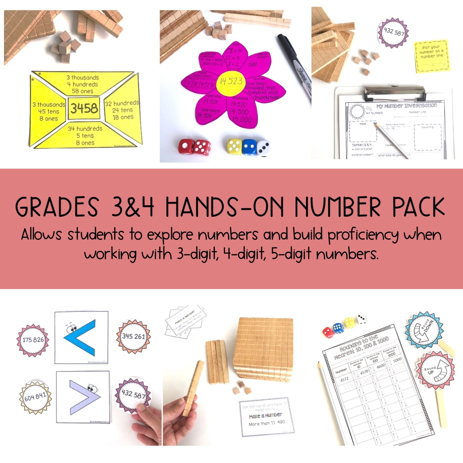 The Hands-on Number Pack is designed to provide you and your students with hands-on, differentiated activities to build place value and number skills, as well as reflection activities and open-ended problem-solving tasks suitable for Grades 3-4.
