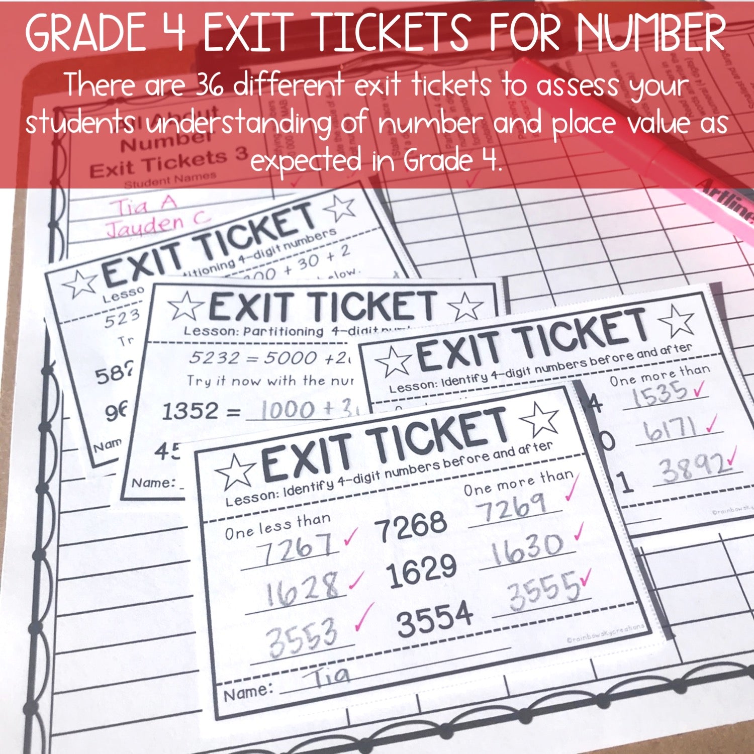 The All about Number Exit Tickets pack includes 36 different exit tickets to assess your students understanding of number and place value expected in Grade 4.