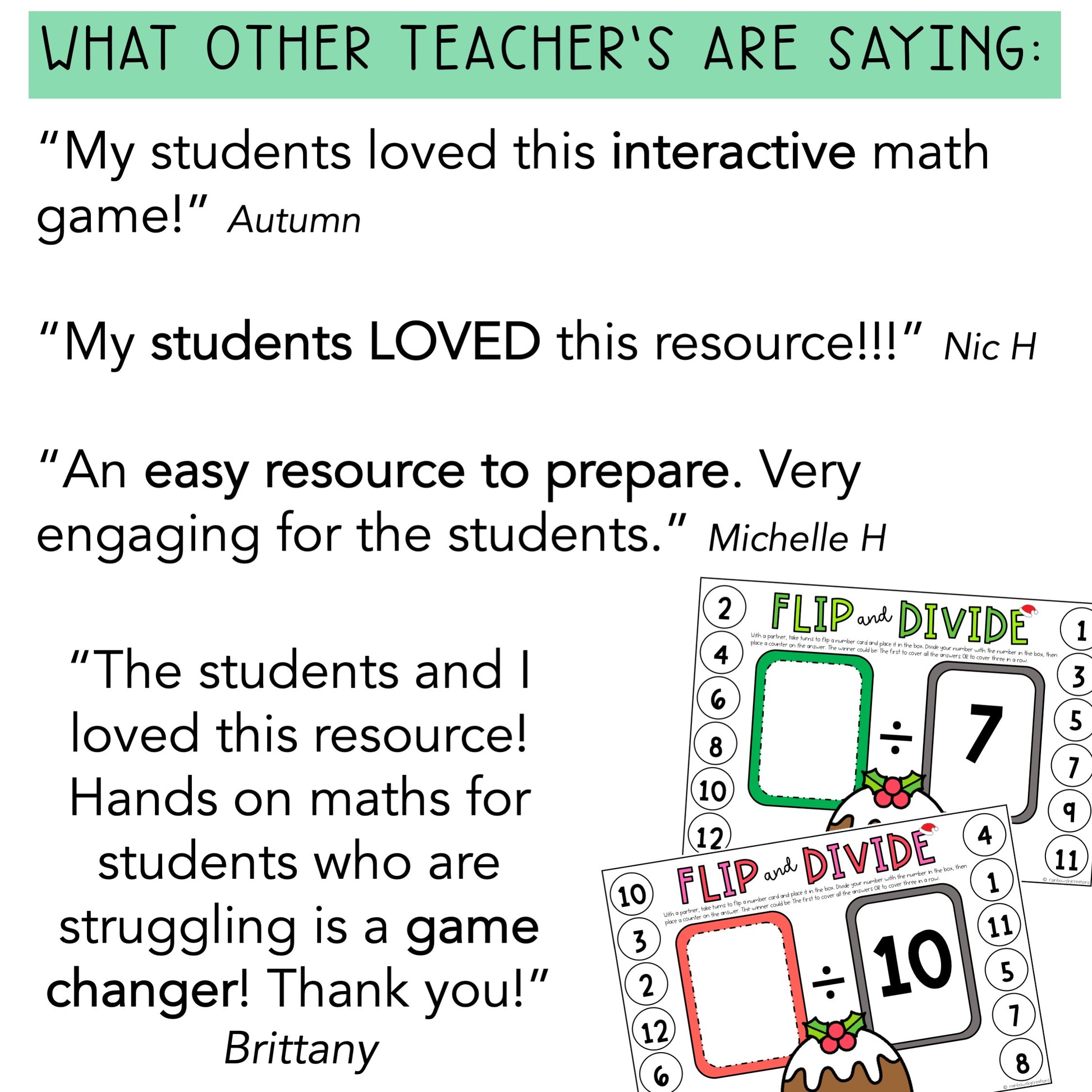 “The students and I loved this resource! Hands on maths for students who are struggling is a game changer! Thank you!” Brittany