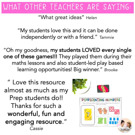 “Oh my goodness, my students LOVED every single one of these games!!! They played them during their maths lessons and also student-led play based learning opportunities! Big winner.” Brooke