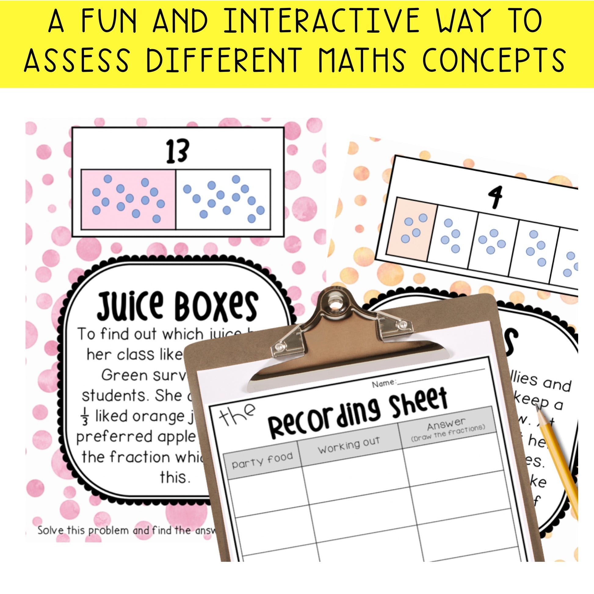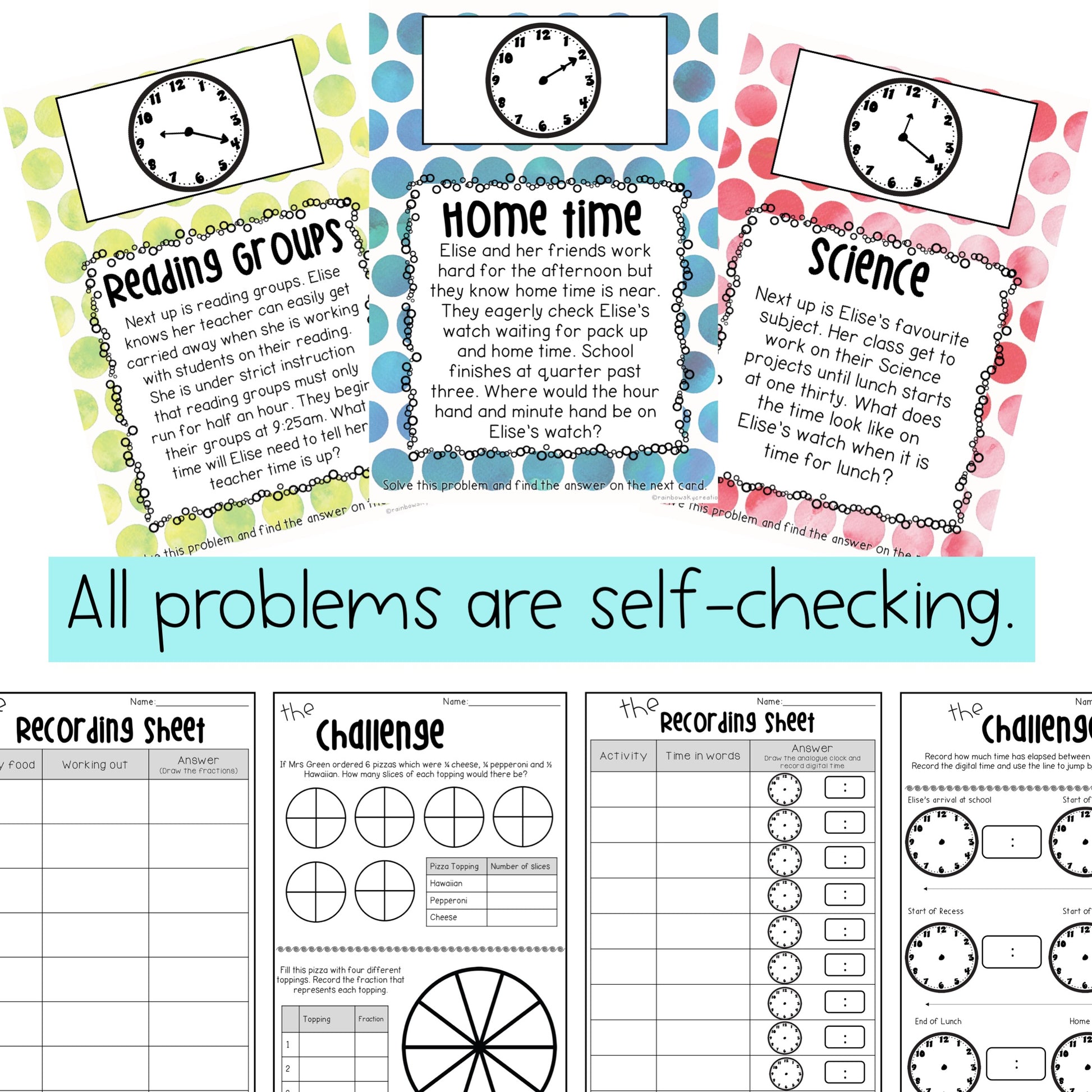 - Display each of the 8 problem cards around your classroom + give each student a recording sheet.