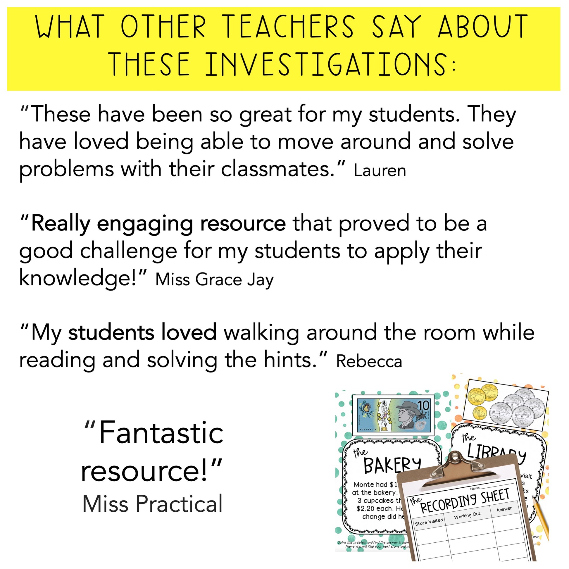 Get ready for your students to be highly engaged in problem solving!!! Included in this bundle are 4 fun and engaging Math problem-solving investigations for Grade 3. Each investigation includes 8-word problems and is designed to provide students with a fun and interactive way to practice specific math concepts.