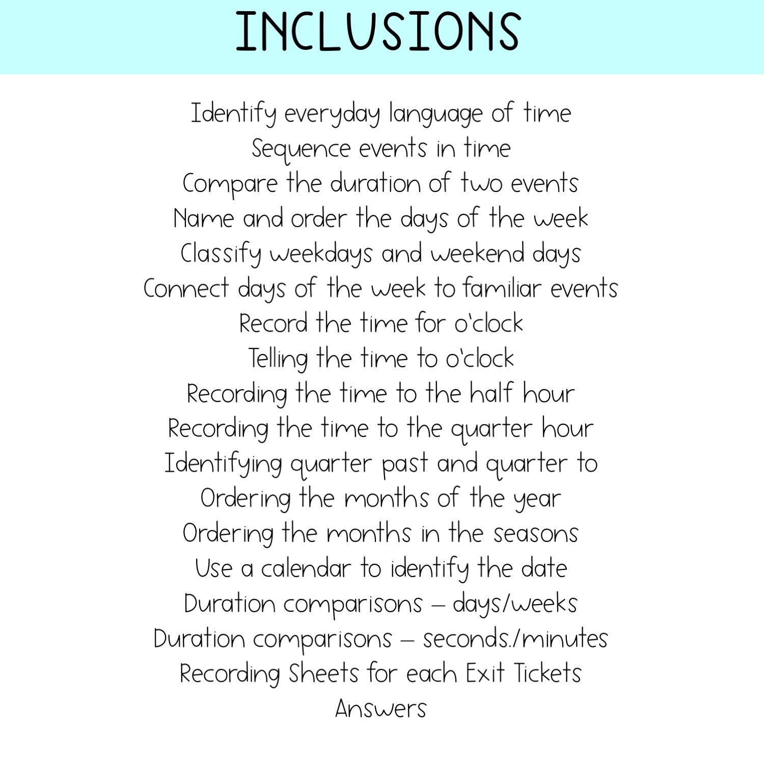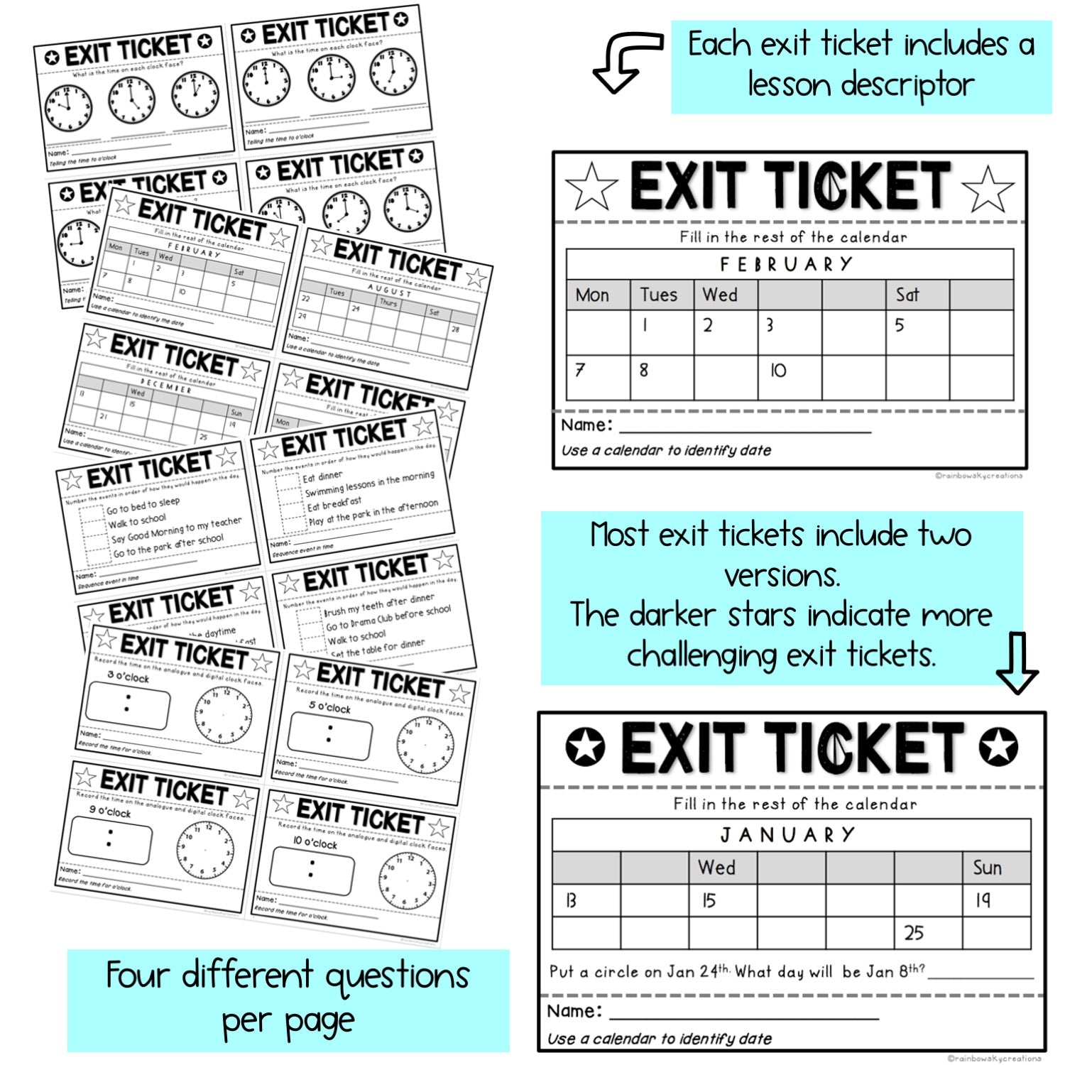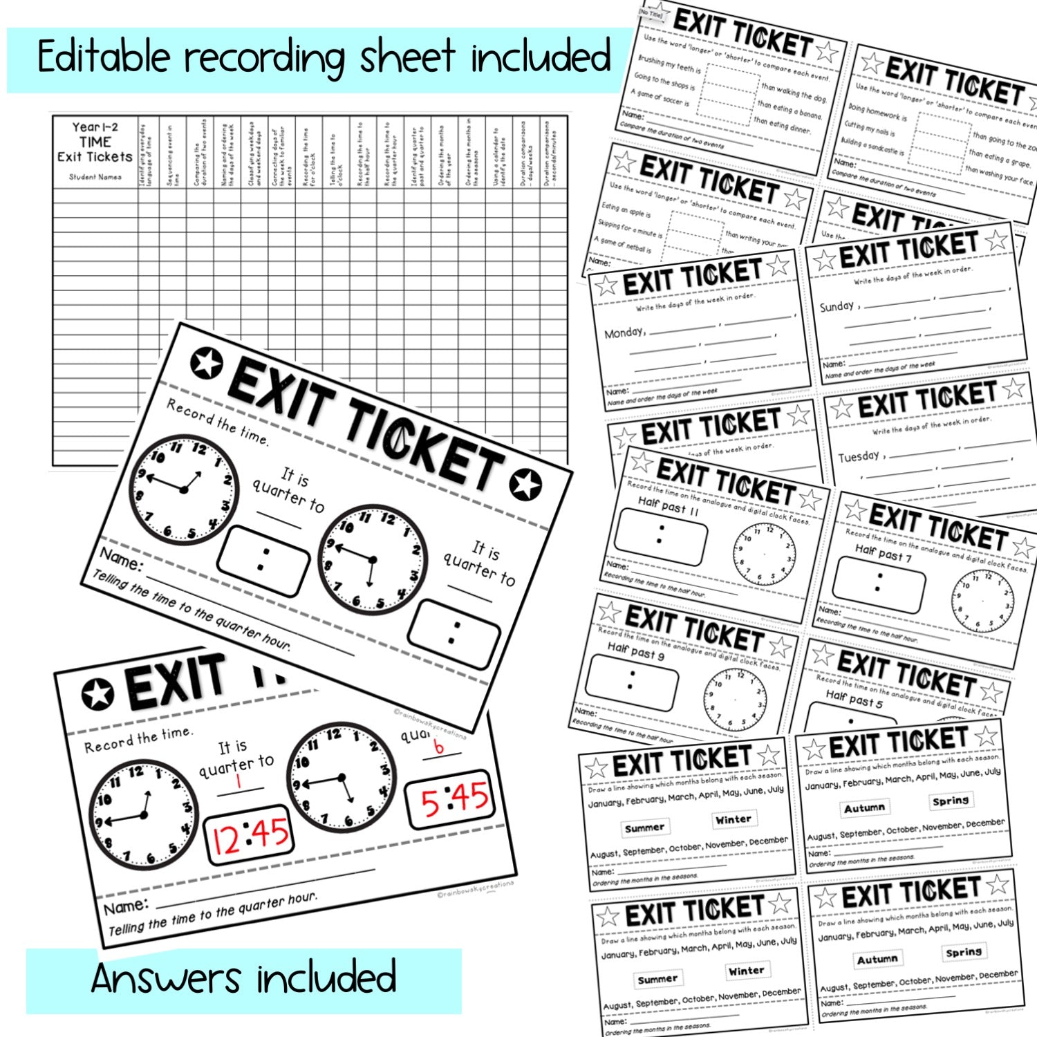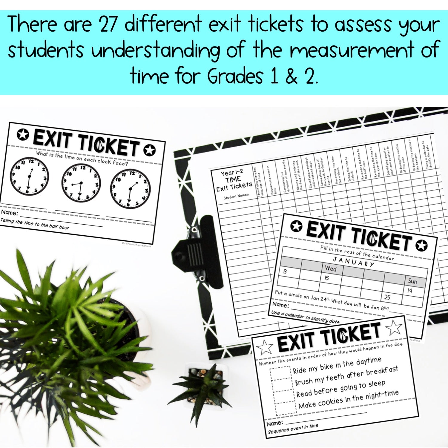 This assessment pack includes 27 different exit tickets to assess your students understanding of measuring the time expected in Grades 1 & 2. Easy to implement pre-test, post-assessment, lesson plenary or as a class warmup. These exit tickets encourage students to show their understanding and to assist in obtaining immediate evidence on how well students have grasped each concept.