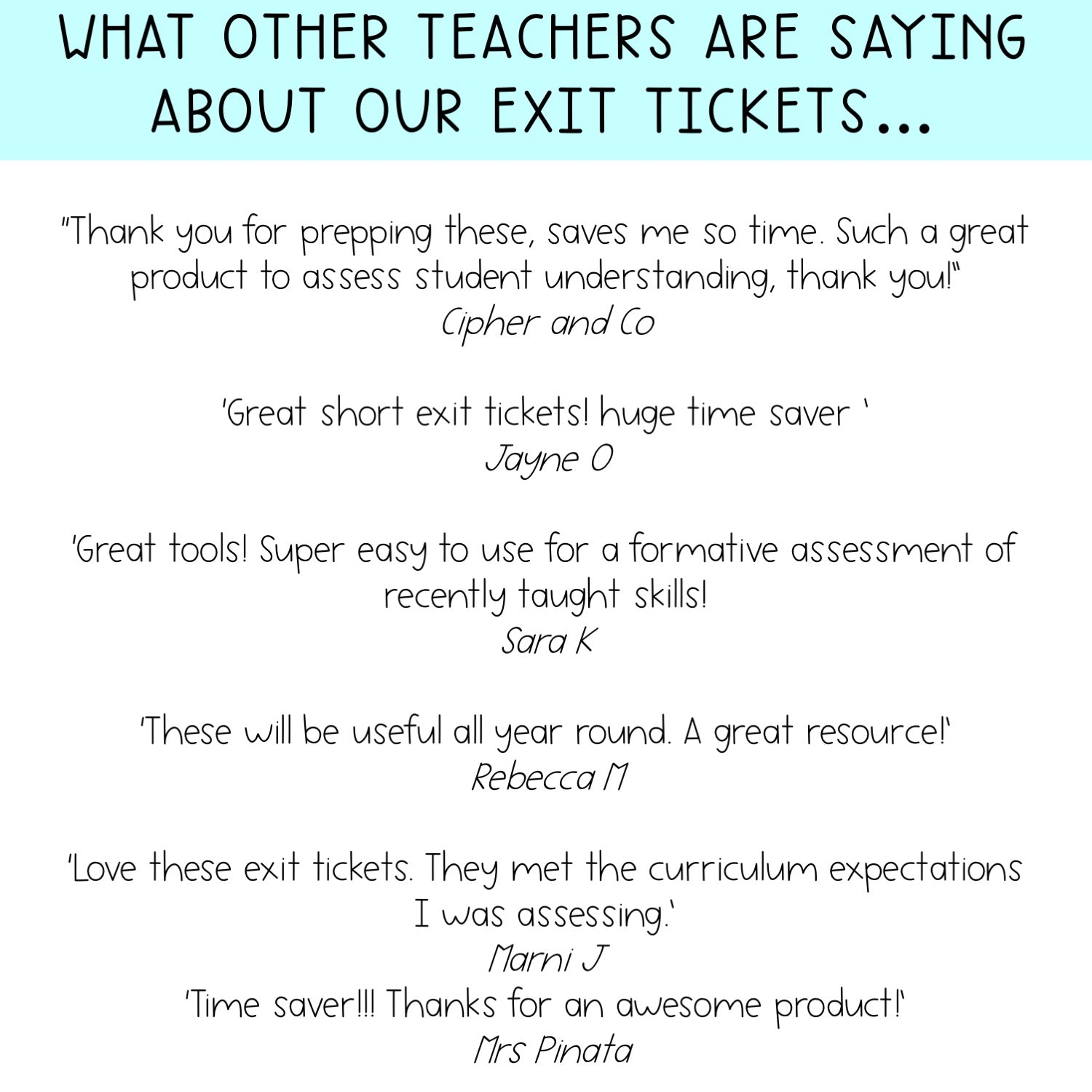 "Love these exit tickets. They met the curriculum expectations I was assessing." Marni J