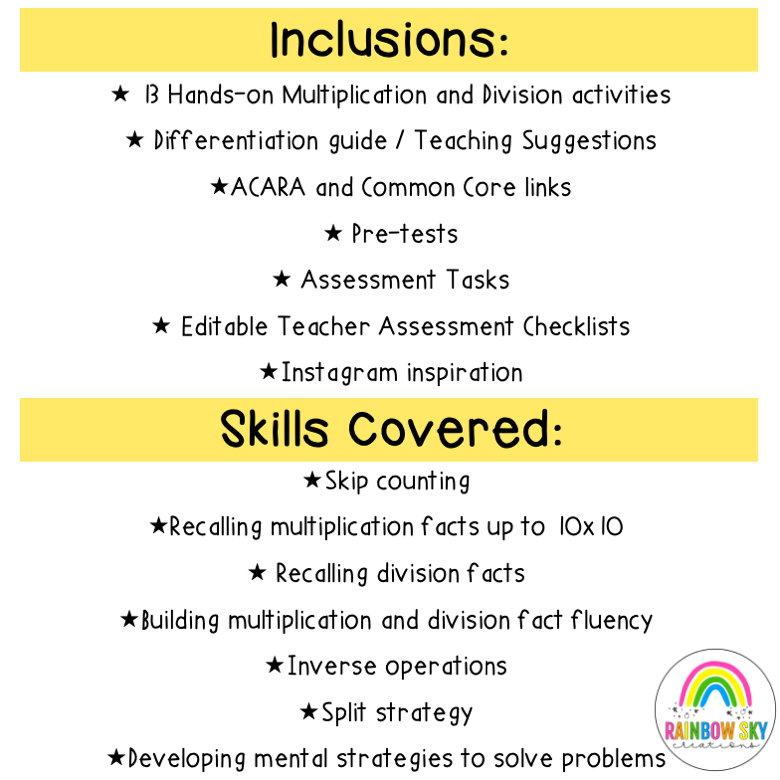 Terms of Use: Copyright of this material is reserved in accordance with the Copyright Act 1968. This purchase is for single classroom/home use only. Additional reproduction of part or all of this resource is prohibited without the written authority of Rainbow Sky Creations. All content and clipart in these files have been created by Rainbow Sky Creations and therefore remain the property of Rainbow Sky Creations.
