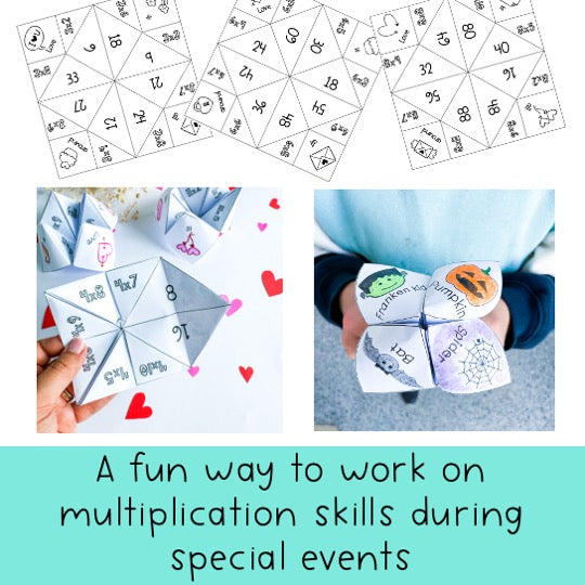 Super easy engagement for your students when working on times table recall and fluency! Kids love these chatterboxes and this bundle includes resources for a range of celebrations and events.