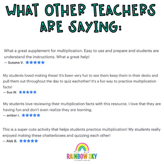 "My students loved making these! It's been very fun to see them keep them in their desks and pull them out throughout the day to quiz eachother! It's a fun way to practice multiplication facts!" Mrs Walcotts Classroom