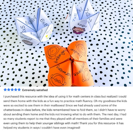 "The students love making cootie catchers. They don't even realize how much they are practicing their math facts when they are playing with friends. Thanks. Very fun!" Alexia