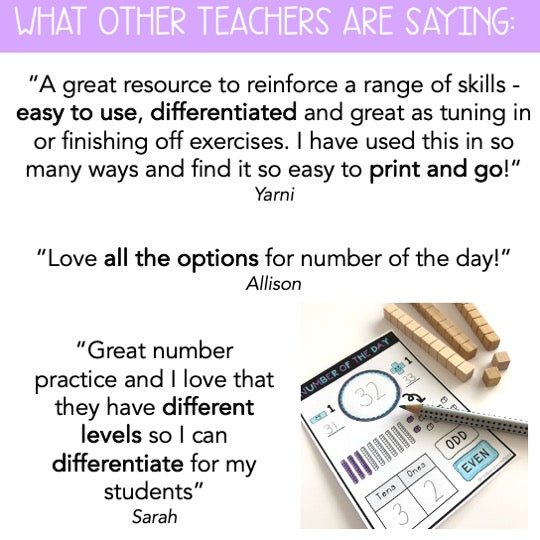 - Daily Number of the day slides (2 & 3-digit numbers)