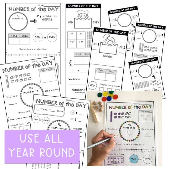 This Number of the Day Bundle will keep you going all year long! Included are a range of resources for you to model to your students, use in Math centers / Math workshop and as number sense assessment.
