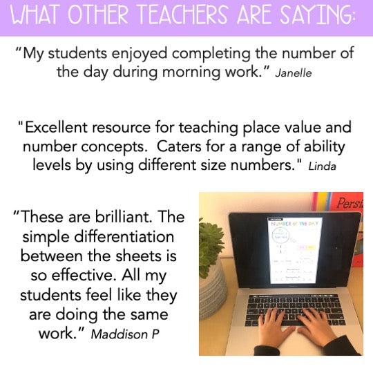 "Excellent resource for teaching place value and number concepts. Caters for a range of ability levels by using different size numbers." Linda