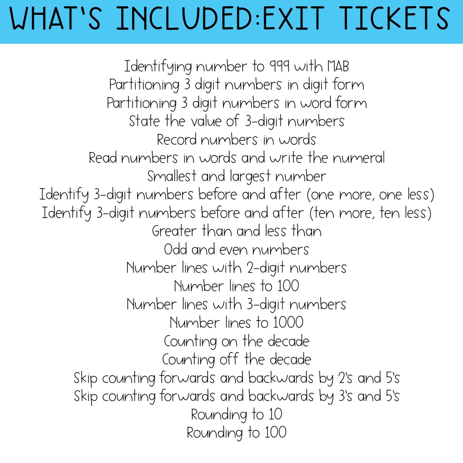 The All about Number Exit Tickets pack includes 21 different exit tickets to assess your students understanding of number and place value expected in Grade 2.