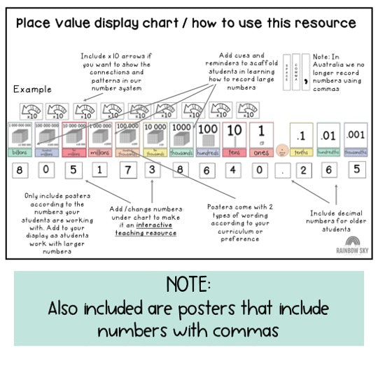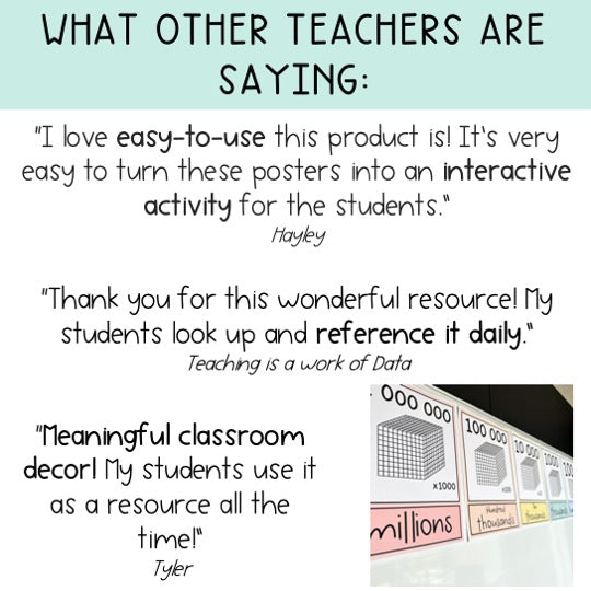 "I love using these as a visual display for my year 3 students. With such varied abilities within the class, having this visual handy provides a great prompt when building numbers with many digits." Annaliese