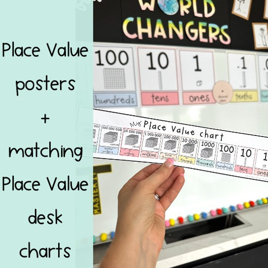 Place Value Chart BUNDLE | Bulletin Board Display & Desk Chart [Pastel Theme]