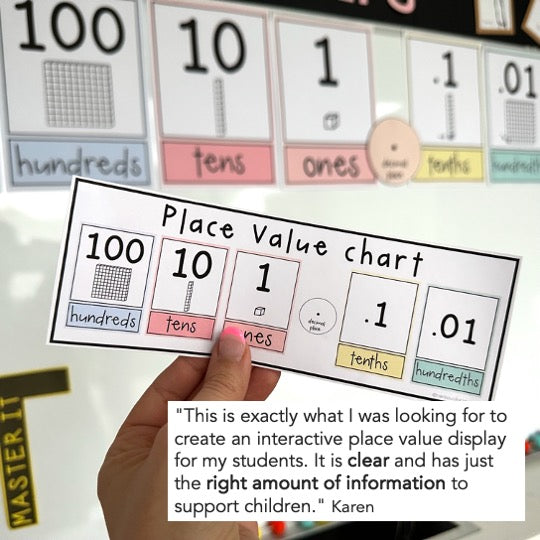 "This is exactly what I was looking for to create an interactive place value display for my students. It is clear and has just the right amount of information to support children." Karen