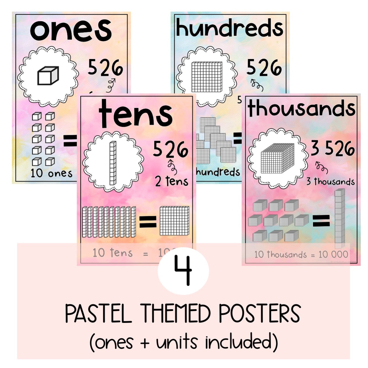 Teach your students to read, record and understand place value with this beautiful pastel poster set. They have been designed as the perfect visual to keep displayed in your classroom all year round to support your teaching and student’s learning.