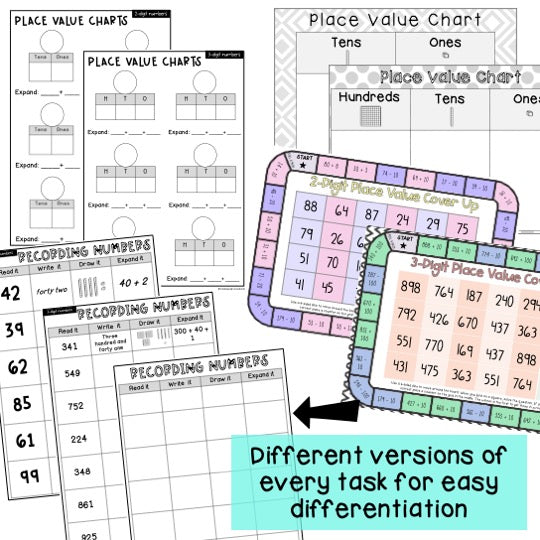 Place Value Worksheets & Games | Differentiated | Grade 2
