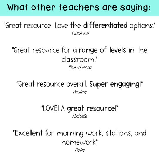 We have included multiple versions of activities in this pack (2, 3-digit numbers and sometimes a mixture of both) so you can easily differentiate your lessons according to your student’s learning needs.