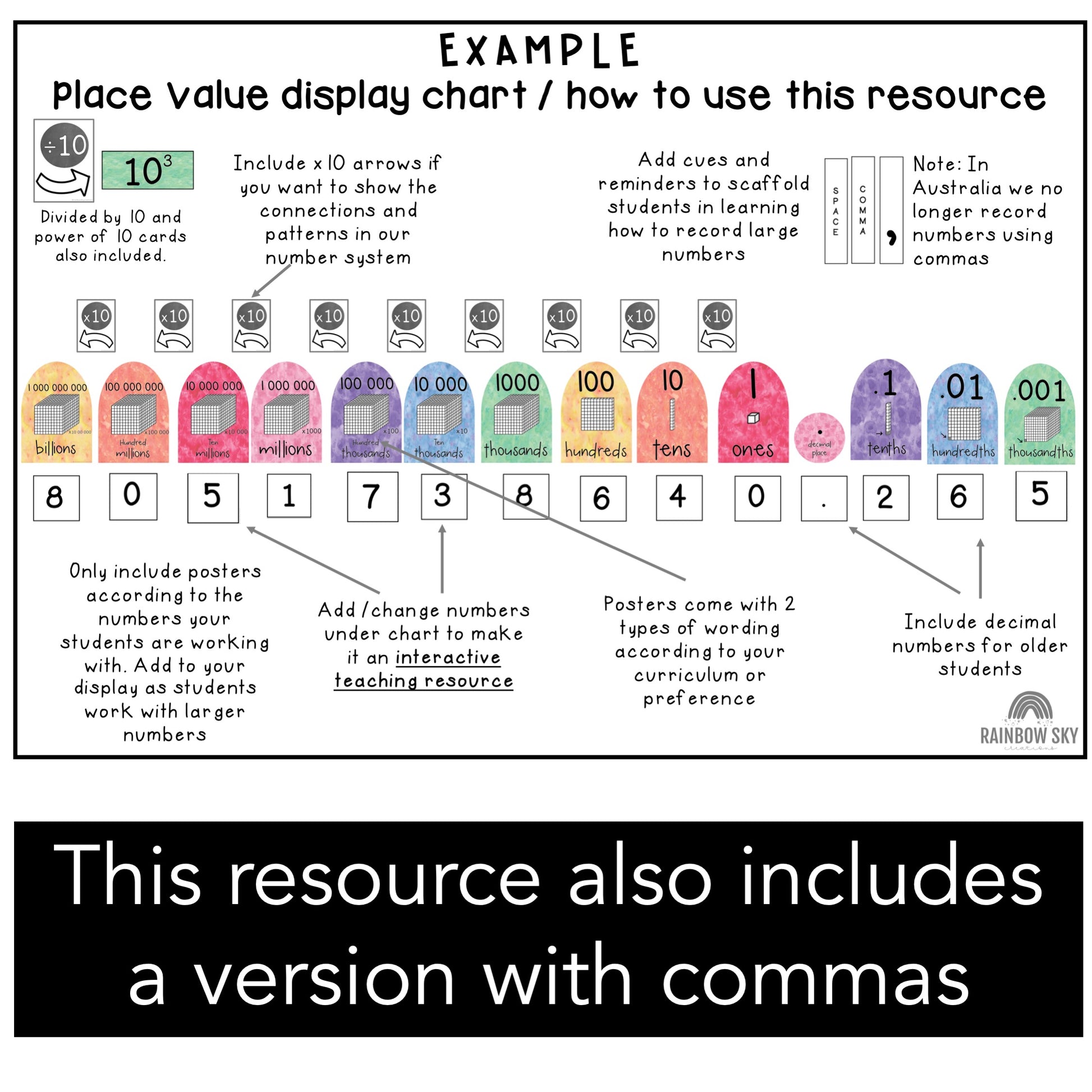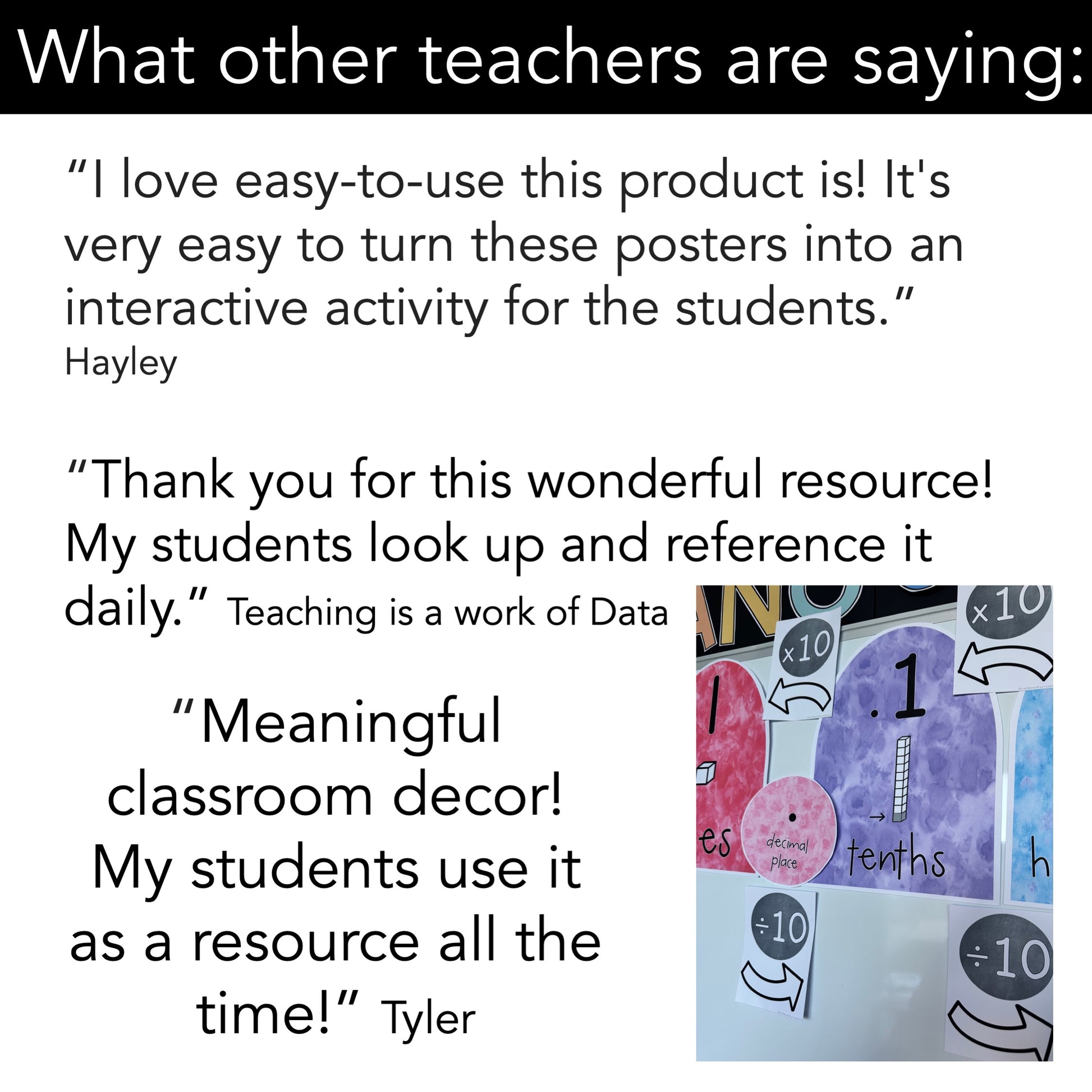 Display these posters according to the size of the numbers your students are working with and add to your display as the year progresses and students begin to work with larger numbers.