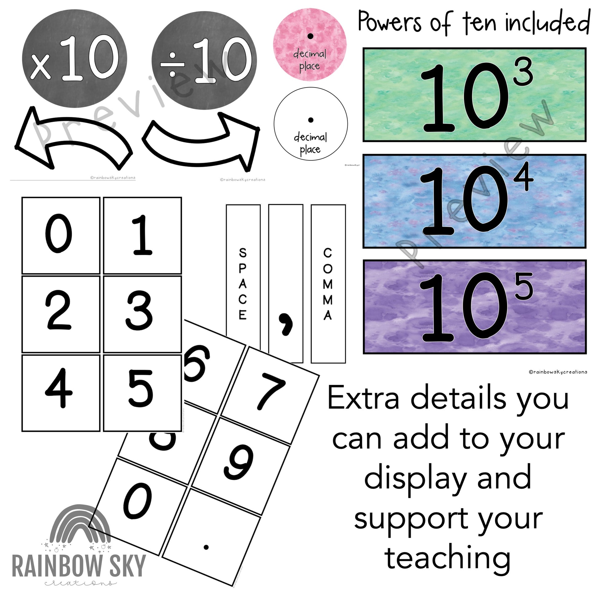 Teach your students to read, record and understand numbers and how they work with this beautiful Rainbow Watercolour Arch poster set. They have been designed as the perfect visual to keep displayed in your classroom all year round to support your teaching and student’s learning when it comes to place value and our number system.