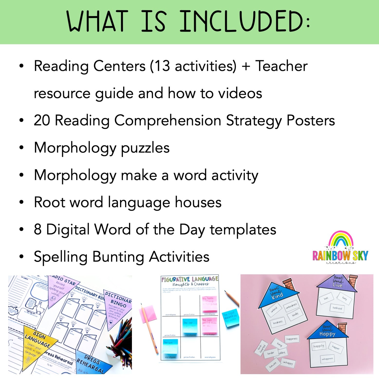 - Reading Centers (13 activities) + Teacher resource guide and how to videos