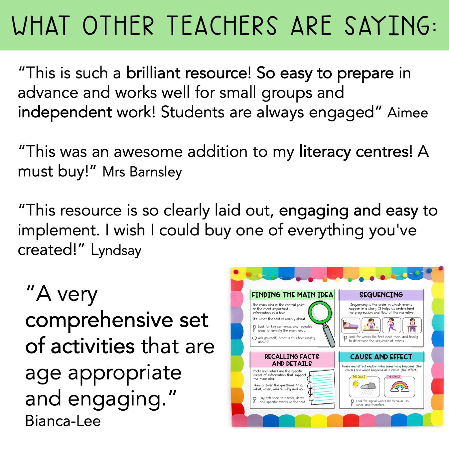 We know classrooms are full of students at different levels and reading abilities. This bundle will allow you to cater for students with different needs. Differentiation ideas and guides are included inside each resource.