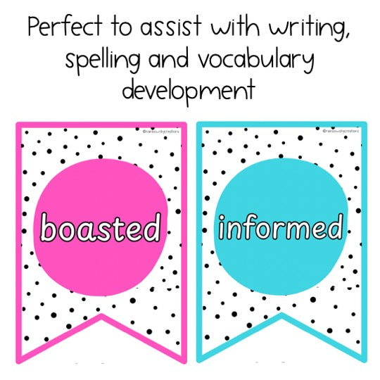 Transform your students' writing and build their vocabulary with our vibrant said synonyms bunting! Perfect for expanding vocabulary and helping students avoid overusing the word "said," this set of 66 eye-catching bunting flags provides an instant scaffold and writing support tool.