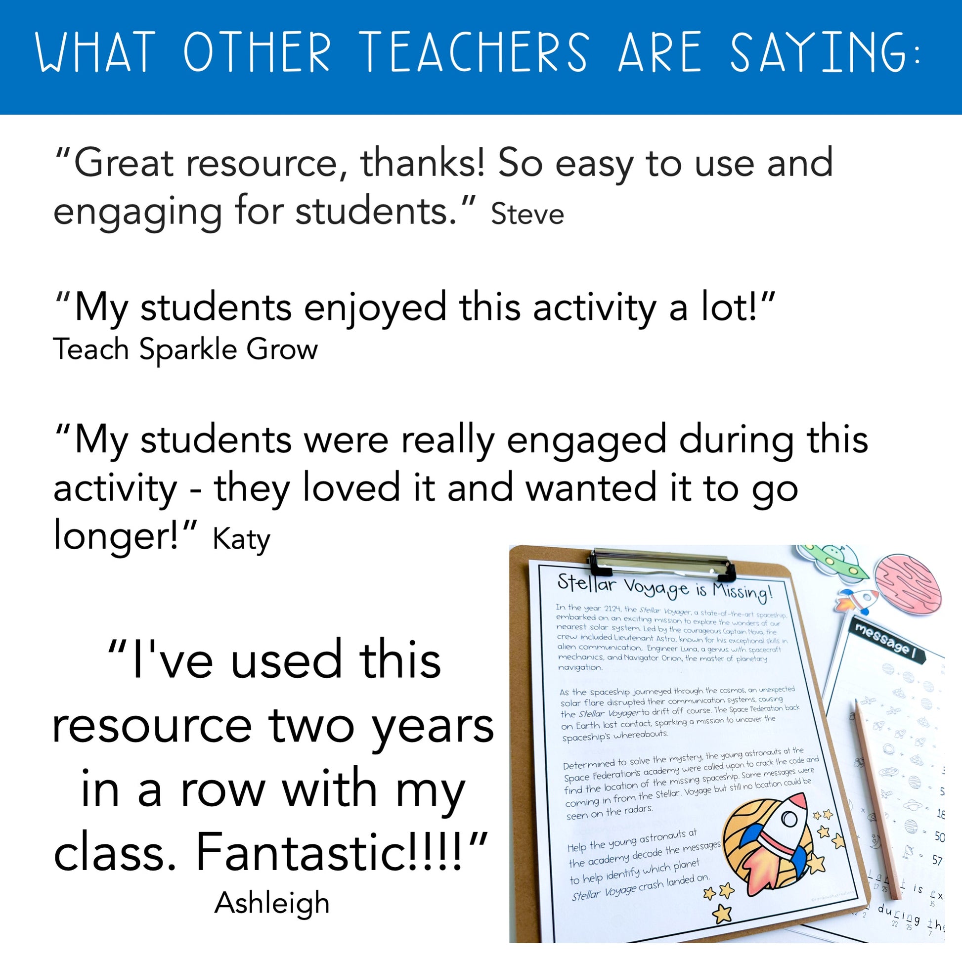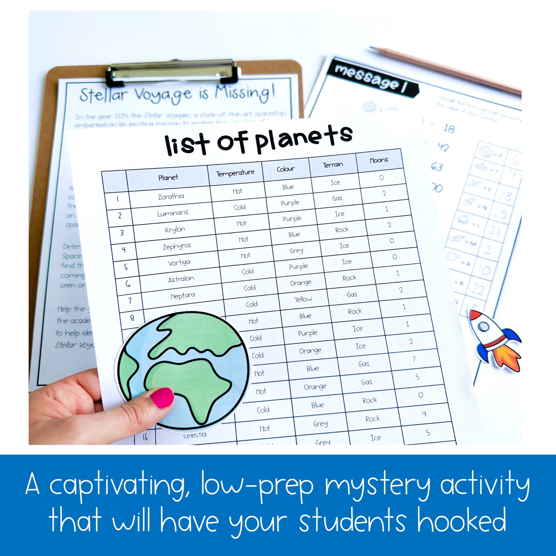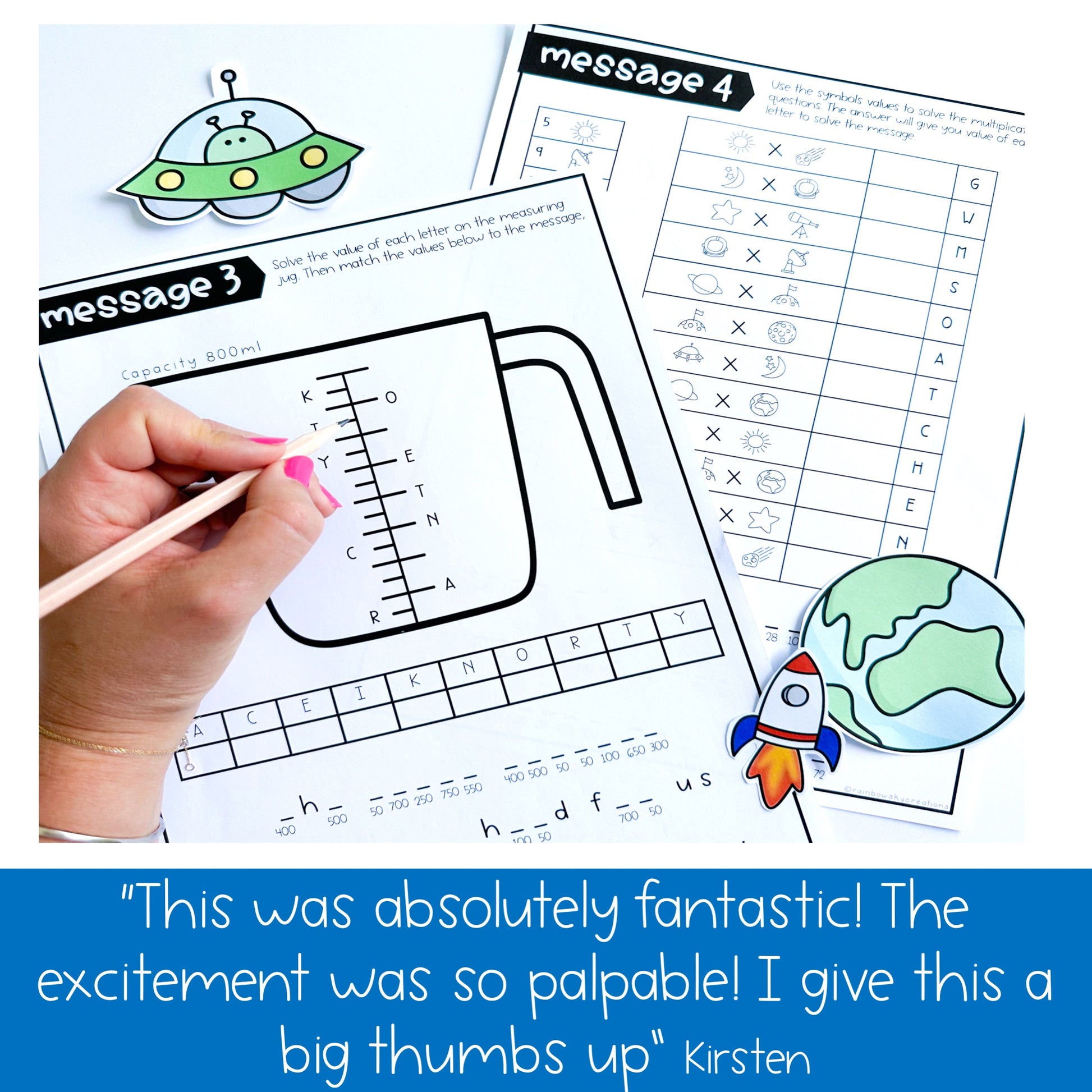 Turn your classroom into a detective agency with this space themed math code cracker - a captivating, low-prep mystery activity that will have your students hooked from start to finish! Perfect for middle to upper primary students, this engaging resource challenges students to crack four different codes to uncover the culprit in a classic "whodunit" style.