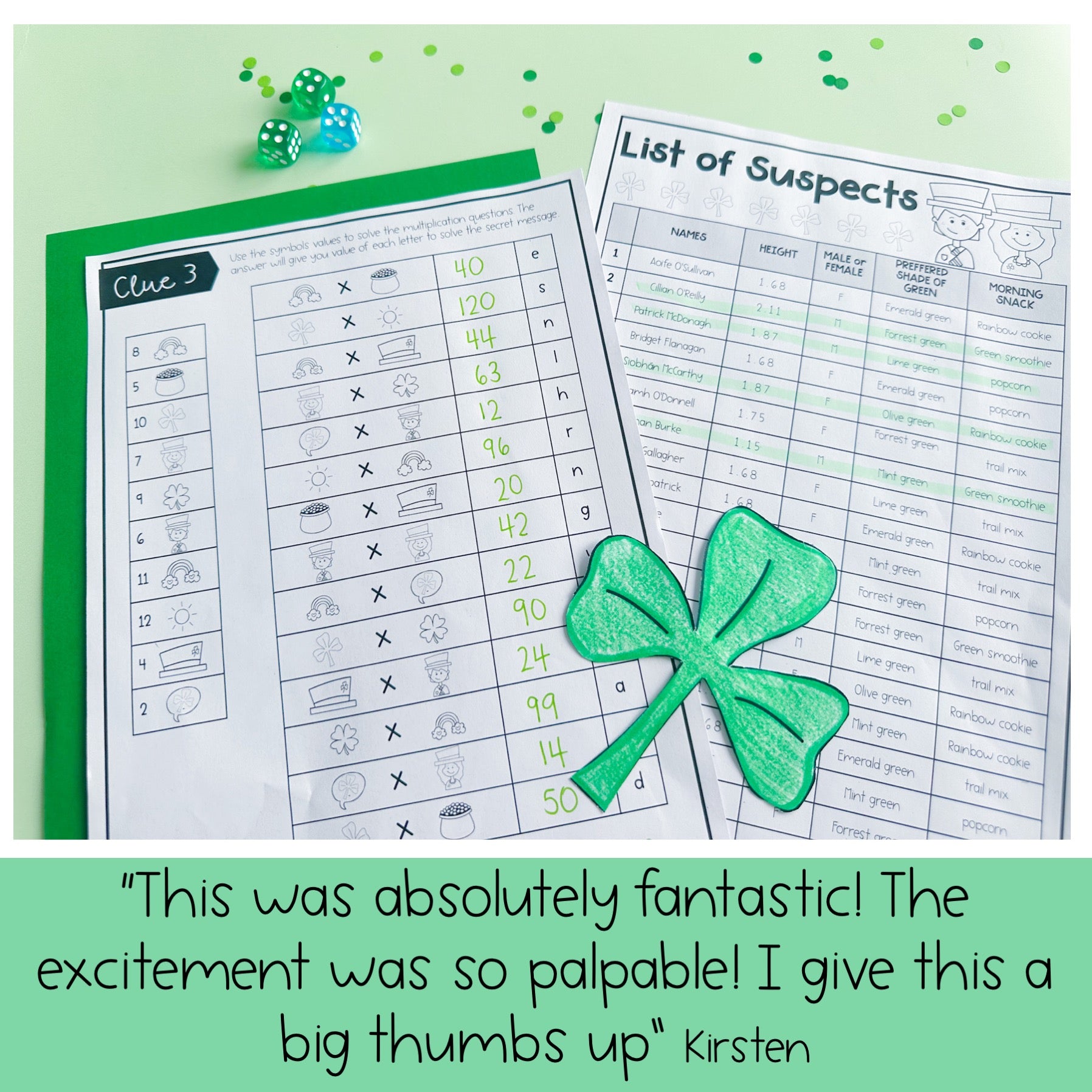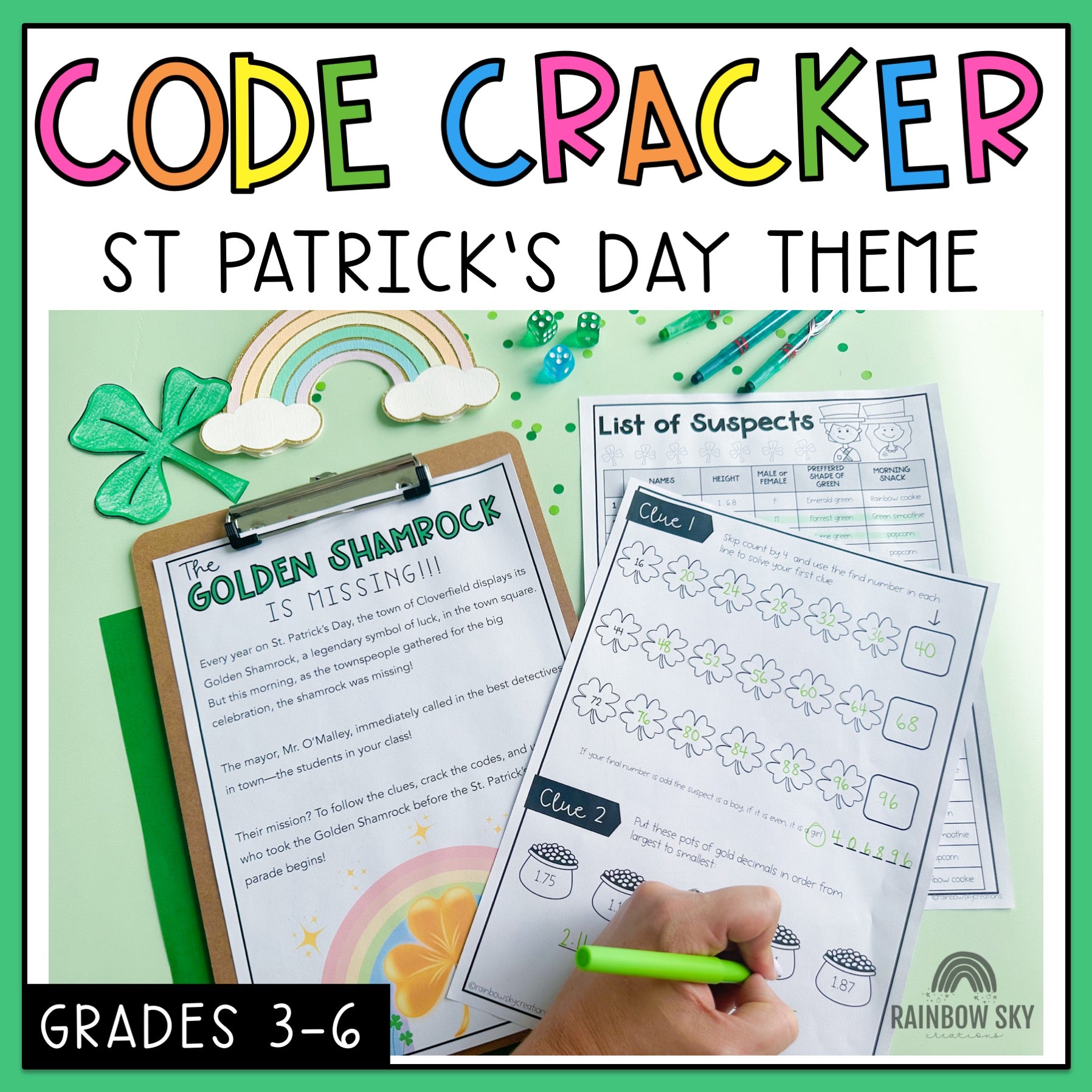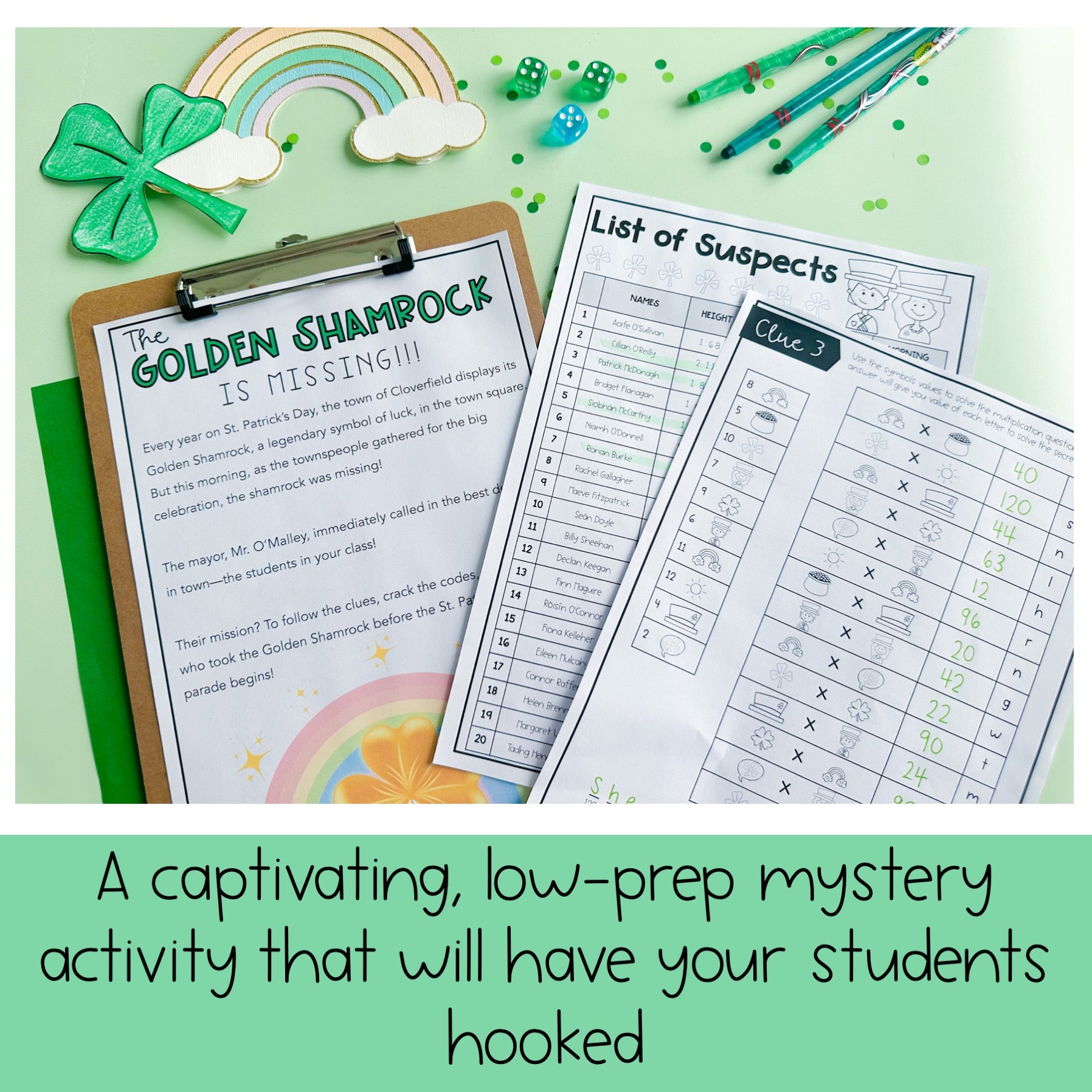 Add a twist of mystery and excitement to your St. Patrick’s Day celebrations with this engaging math mystery challenge! Your students will become math detectives, using their problem-solving skills to crack the codes and uncover which teacher took the golden shamrock.