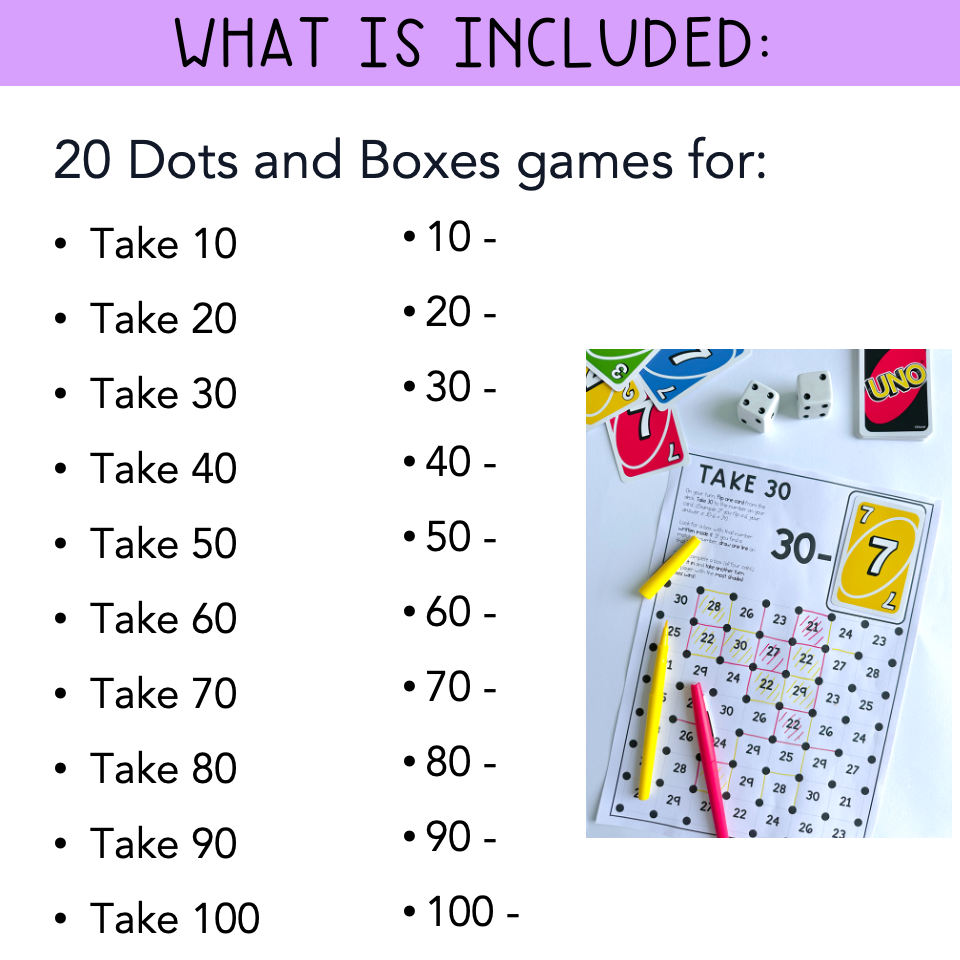 Make subtraction fun and fluency-focused with these Dots and Boxes subtraction games