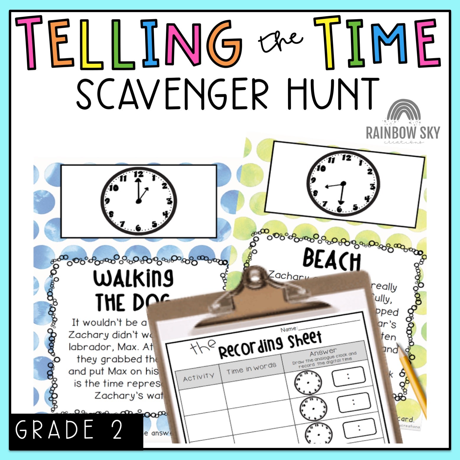 Telling The Time Scavenger Hunt | Analog Clock Word Problems | Grade 2