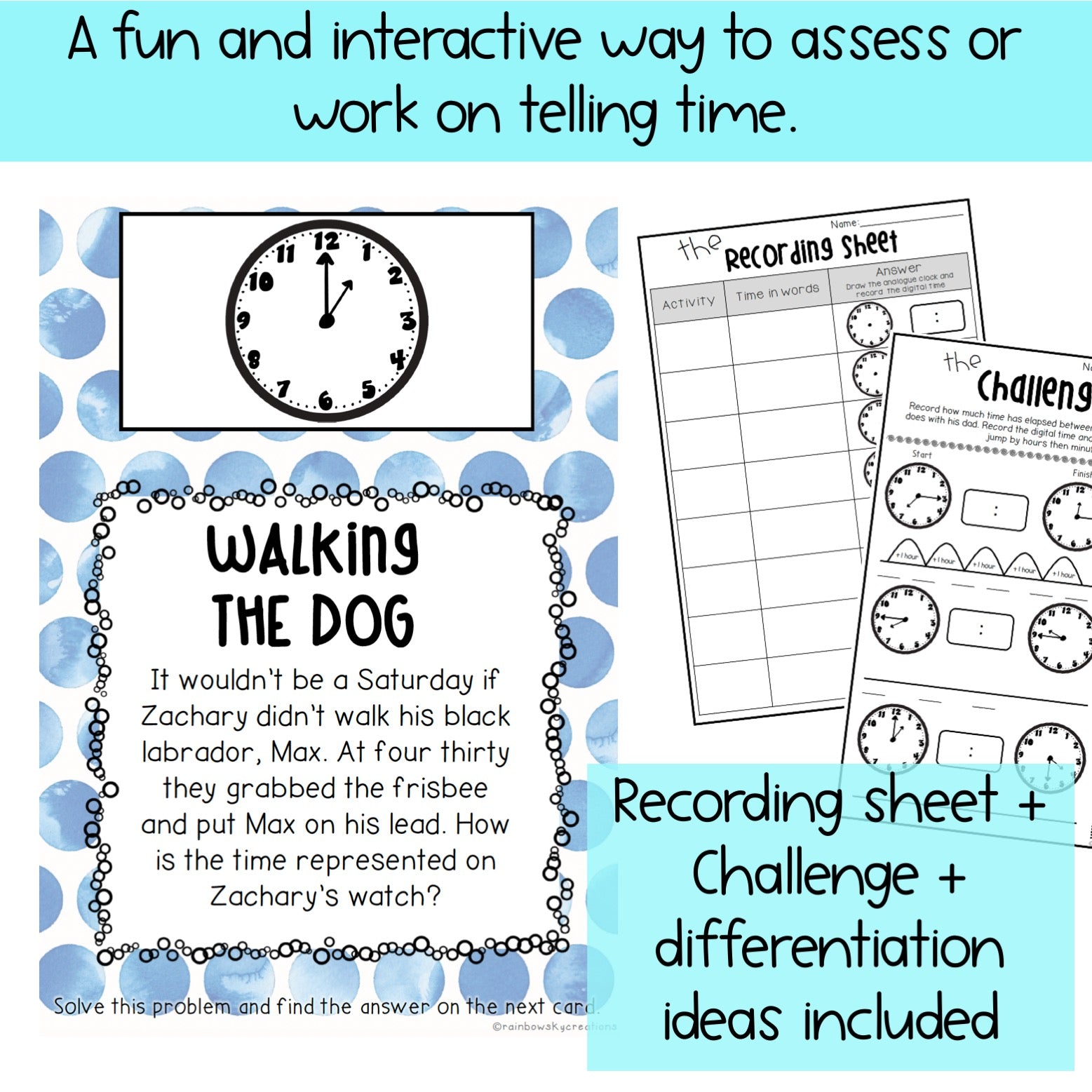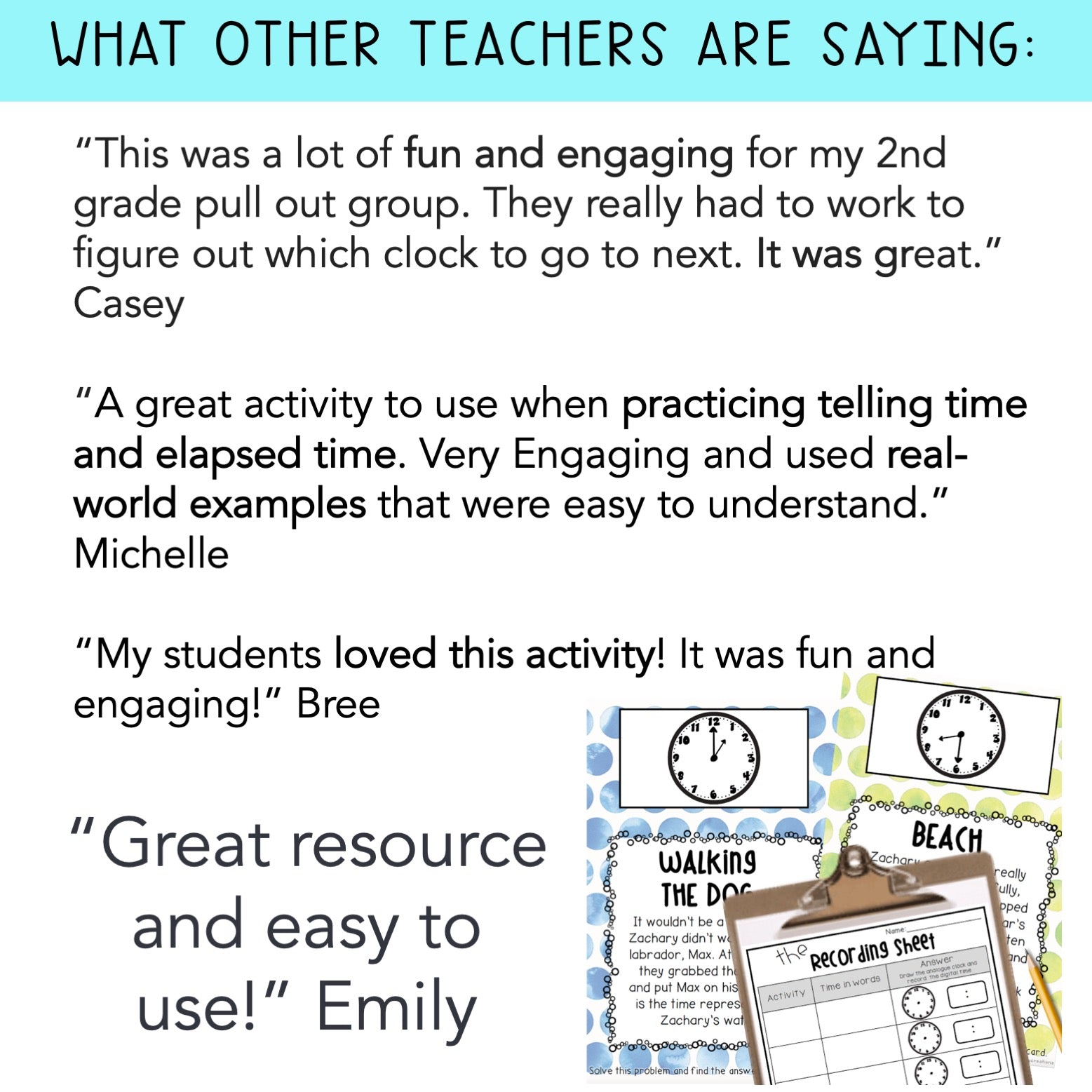 “This was a lot of fun and engaging for my 2nd grade pull out group. They really had to work to figure out which clock to go to next. It was great.” Casey