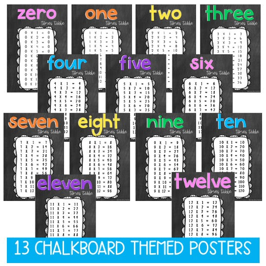 Times Table Posters | Multiplication Bulletin Board [Chalkboard Theme]