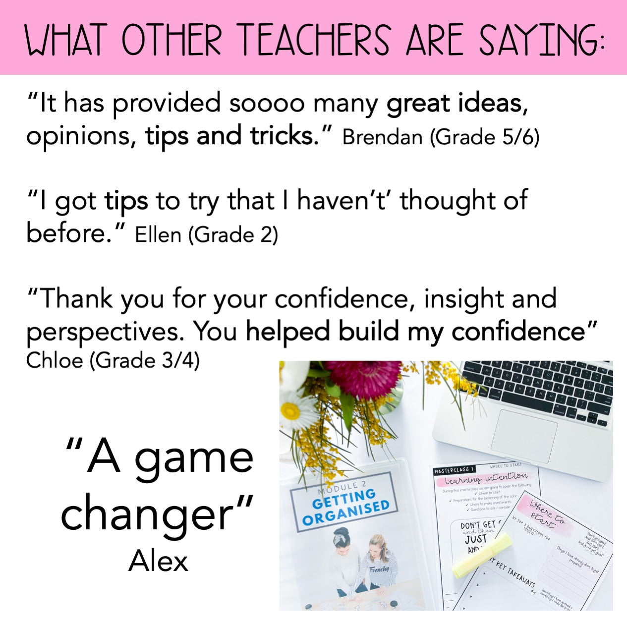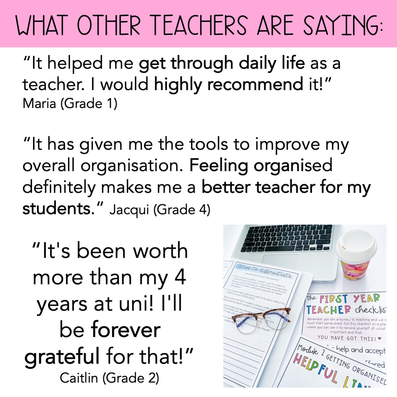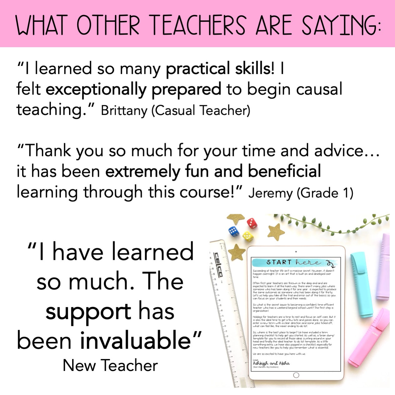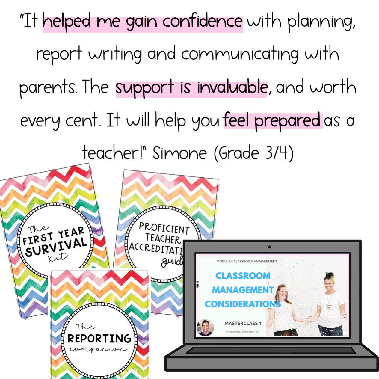 “It's been worth more than my 4 years at uni! The realness and openness of both Alisha and Ashleigh shine a light on 'real life' teaching that uni just doesn't quite cover.” – Caitlyn H, Grade 2 Teacher