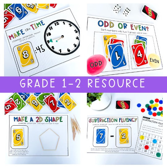 Included in this resource pack are a variety of templates you can use with UNO cards, including options to easily differentiate for your students for every grade.