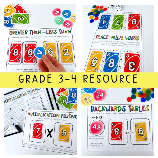 The MOST FUN your students will have in Math all year! These ready to print uno resources cover a range of skills and will not only make your life easier, your students will be asking to play them!