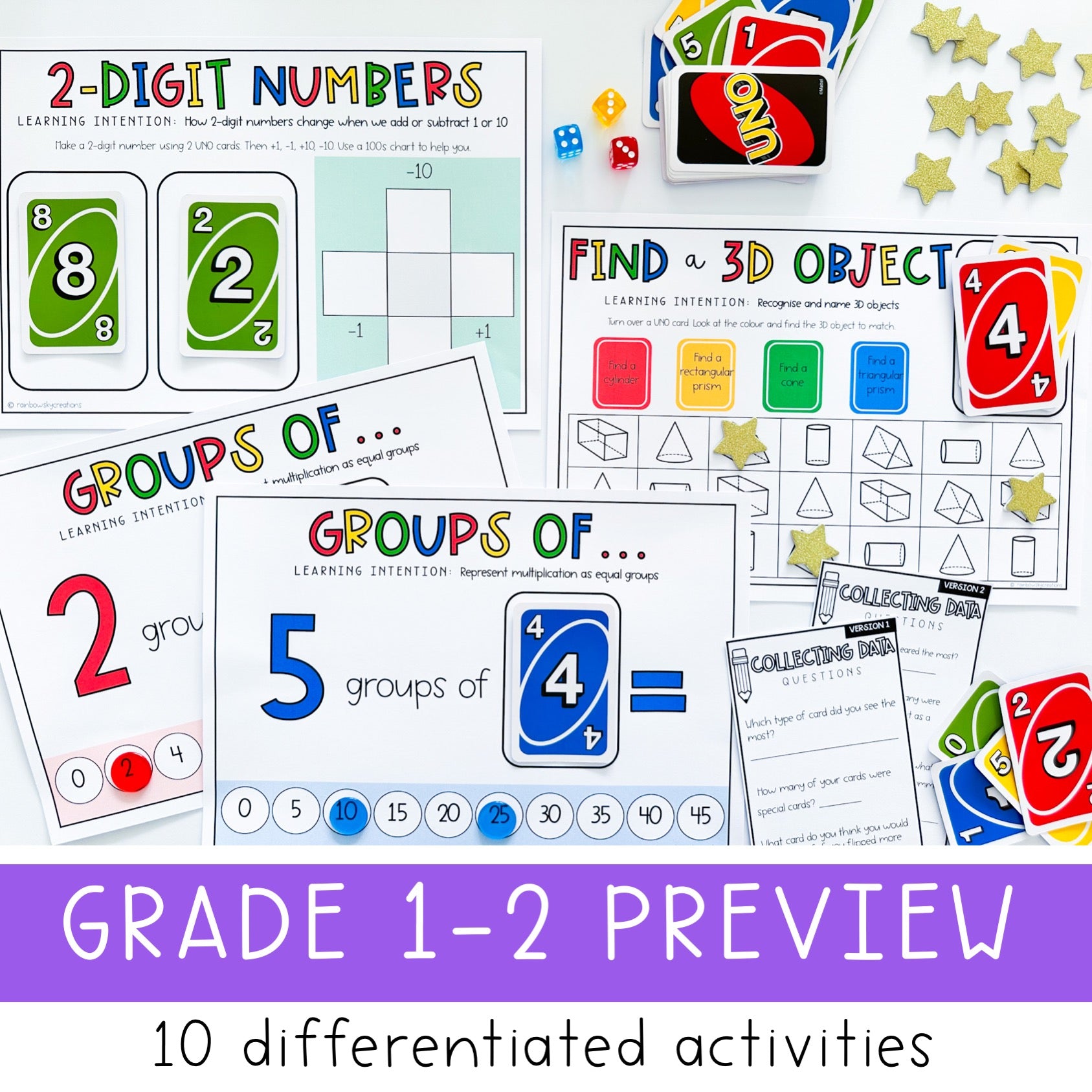 Included in this resource pack are a variety of templates you can use with UNO cards, including options to easily differentiate for your students for every grade.