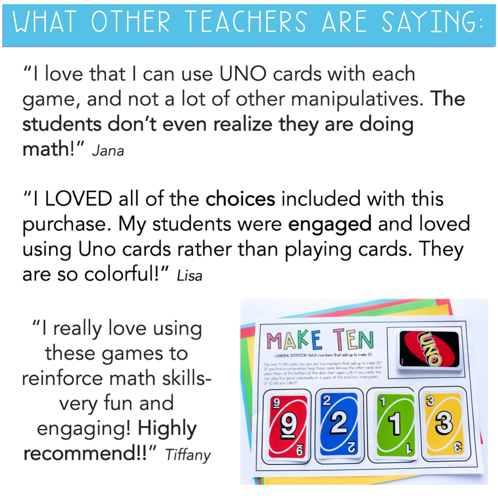 “The students cheer on math station days because they know they'll get to play one of the Uno Math Games.” – Marcie